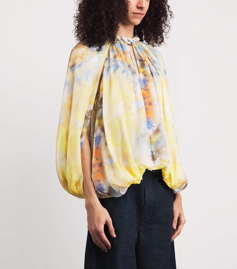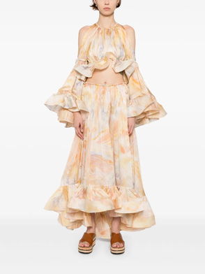 Zimmermann’s Spring 2026 collection, titled Kindred Spirit, celebrates the free-spirited artistic scene of 1970s Lavender Bay. Hailing from the collection and crafted entirely from silk, the Alchemy twisted blouse is a softly cascading piece, defined by romantic gathering, a braided trim and an asymmetric hem that enhances its sense of effortless movement.