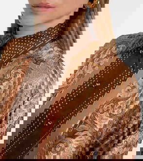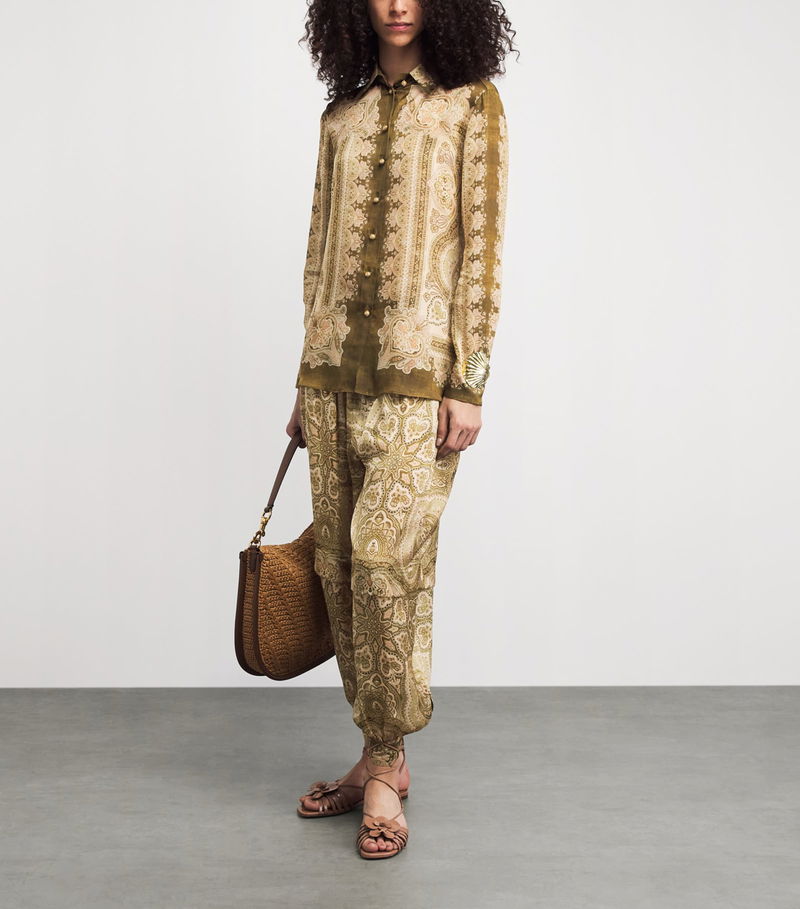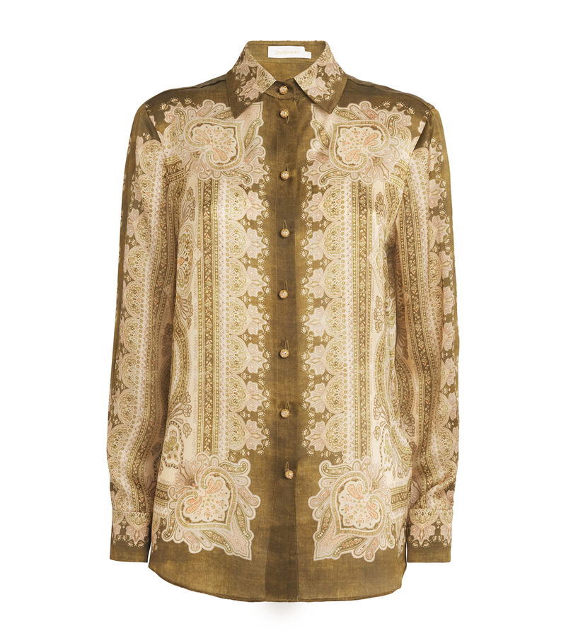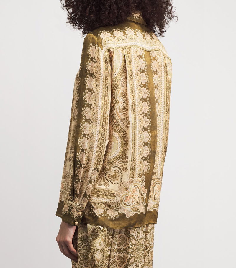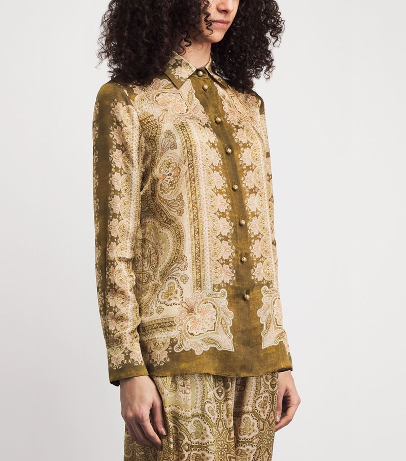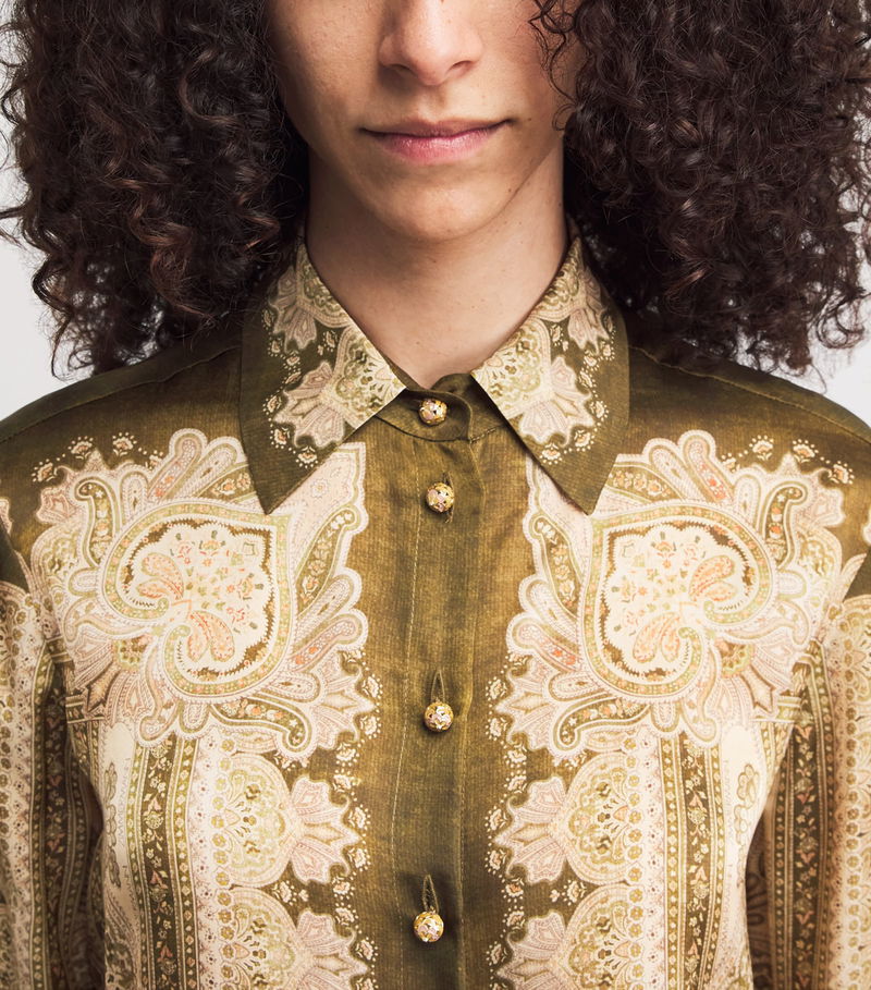 Titled ‘Kindred Spirit’, Zimmermann’s Spring/Summer 2026 collection honours the trailblazing artists of the 1970s through striking prints and flowy fabrics. The Luna shirt exalts both: cut from silk satin, its sleek fabrication is enlivened with flourishing paisley motifs, evoking the expressive energy of this transformative era.