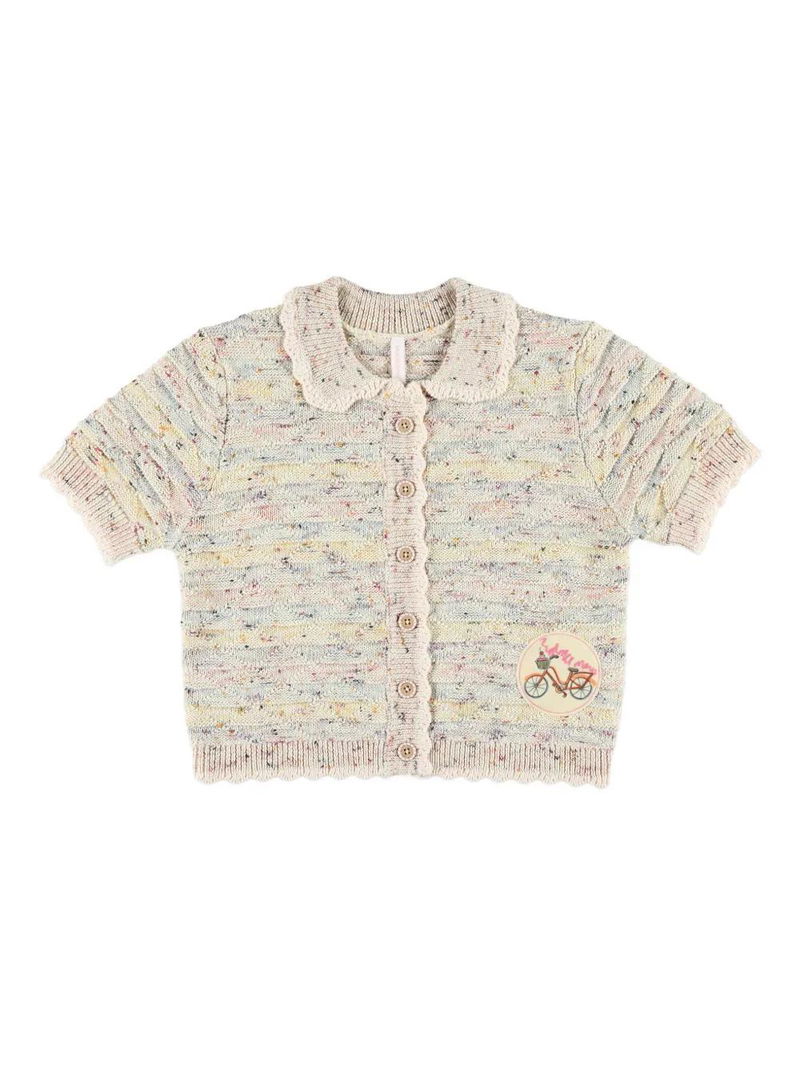 Speckle-knit Short-sleeve Cardigan - Neutrals
