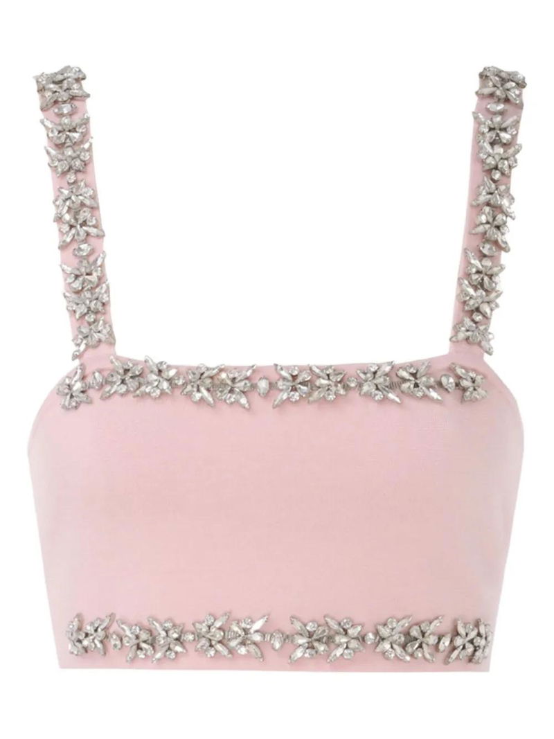Pink crystal embellishment square neck adjustable straps.