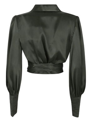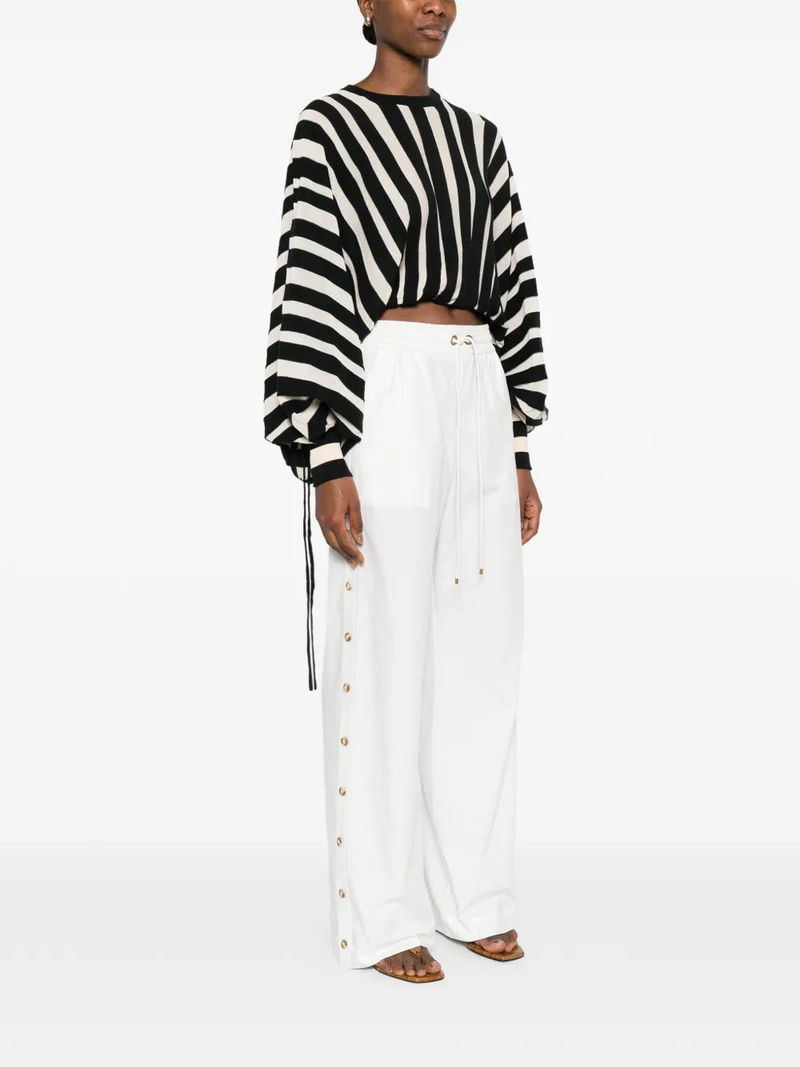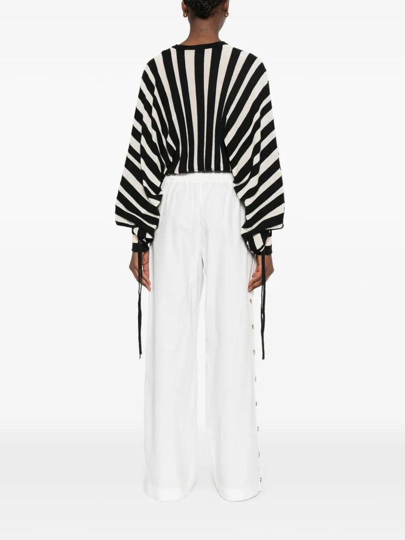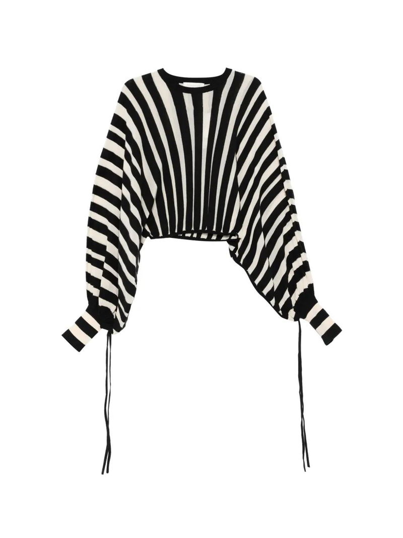 Striped Balloon-Sleeve Top.