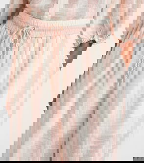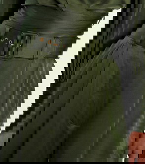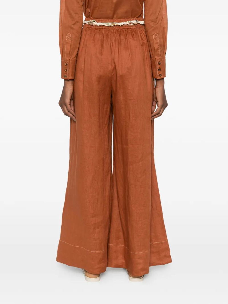 Brown braided belt side seam pockets tonal stitching.