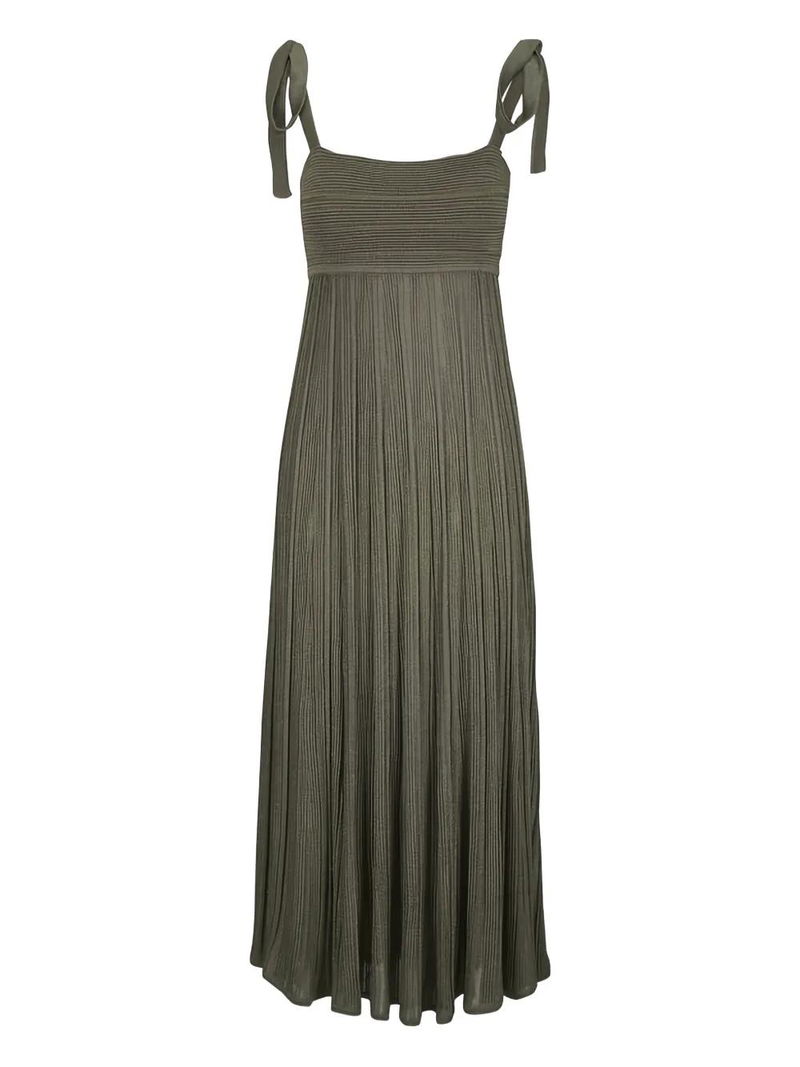 Olive green pleated design tie fastening square neck sleeveless.