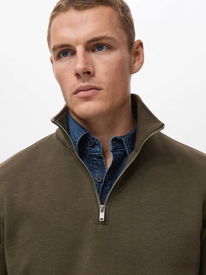 Cotton Blend Chunky Zip Neck Jumper