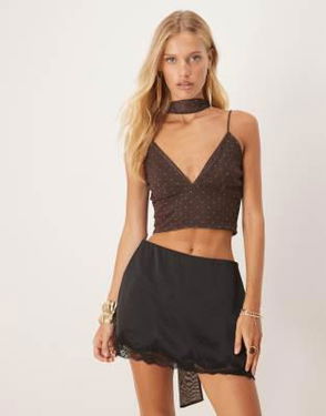 Abercrombie & Fitch High Rise Lace Detail Satin Mini Skort In Black