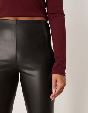 Abercrombie & Fitch High Rise Clean Waist Leather Slim Bootcut Trousers In Black