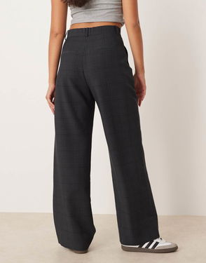 Abercrombie & Fitch Ultra High Rise Sloane Wide Leg Trousers In Micro Plaid Black