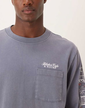 Abercrombie & Fitch Coffee Graphic Long Sleeve T-shirt In Washed Blue