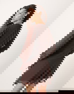 Abercrombie & Fitch Long Sleeve Plunge Neck Wrap Front Mini Dress In Brown