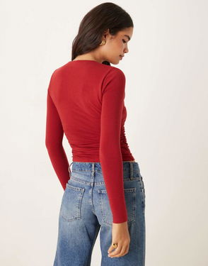 Abercrombie & Fitch Long Sleeve Bodysuit With Bra Insert In Red