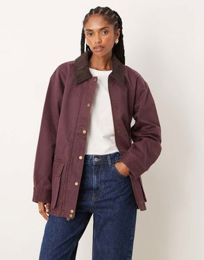 Abercrombie & Fitch Mid Length Contrast Collar Waxed Barn Jacket In Burgundy