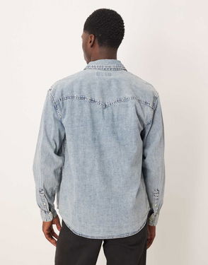 Abercrombie & Fitch Long Sleeve Denim Shirt In Light Blue Wash