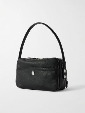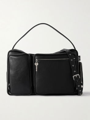 Embellished Patent Leather-Trimmed Mesh Shoulder Bag