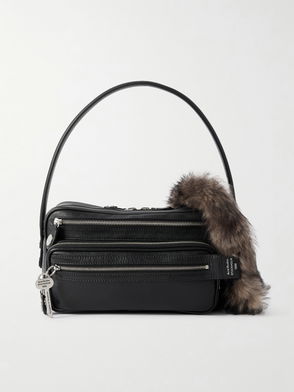 Embellished Patent Leather-Trimmed Mesh Shoulder Bag