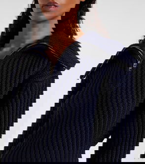 Embroidered-Logo Patch-Pocket Knitted-Wool Cardigan
