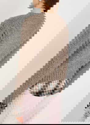 Layered Cotton-Poplin And Cable-Knit Cardigan