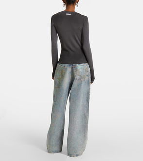 Distressed Ribbed-knit Cotton-blend Tank Top