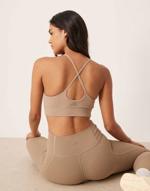 Training All Me Rib Light Support Sports Bra In Chalky Brown