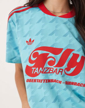 Graphic Football Allover Print Bodycon Long Sleeve Jersey In Blue Glow
