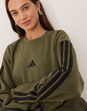 Adidas Sportswear Three Stripe Fleece Sweatshirt In Khaki