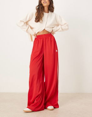 Wide Leg Satin Joggers In Red