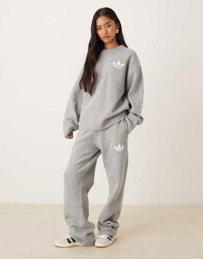 Knitted Wide Leg Track Pants In Grey