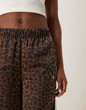 Satin Wide Leg Track Pants In Leopard Print - MULTI