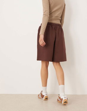 Jersey Shorts With Linear Logo In Brown