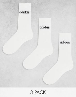 Adidas Training 3-pack Linear Logo Crew Socks In White