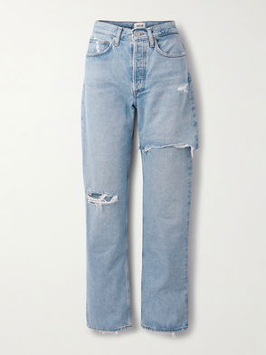 '90s Distressed Mid-Rise Straight-Leg Jeans