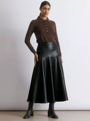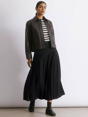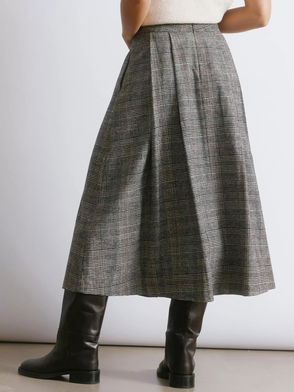 Drop Waist Flared Twill Cotton Midi Puffball Skirt