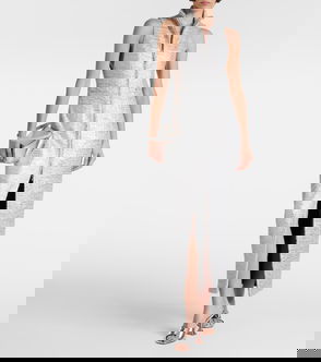 Front-slit Lurex® Tweed Midi Dress