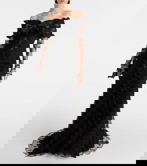 Bow-detail Ruffled Off-shoulder Lace Gown