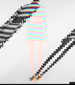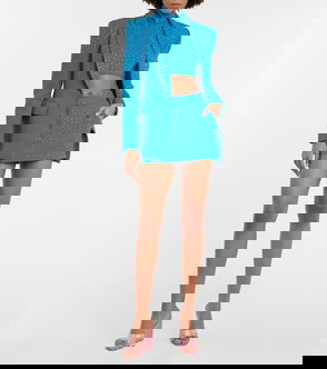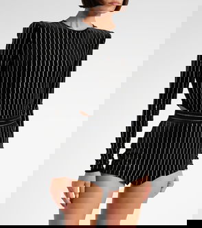 Crystal-embellished Pinstripe Velvet Bodysuit