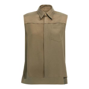 Green Sleeveless Shirt With Chest Pocket