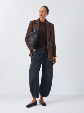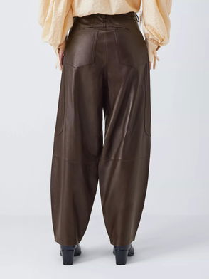 Saddle Barrel Leg Pure Leather Trousers, Chocolate