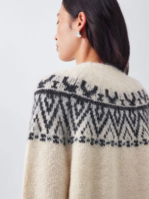 Fair Isle Yoke Wool Rich Cardigan, Cream/Blue
