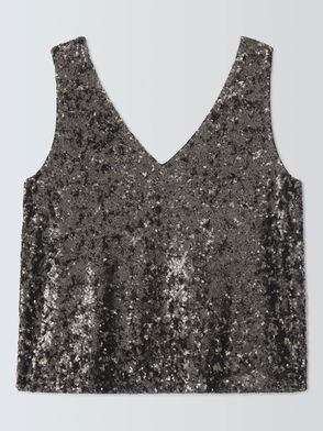 Sheridan V-Neck Sequin Vest Top, Charcoal