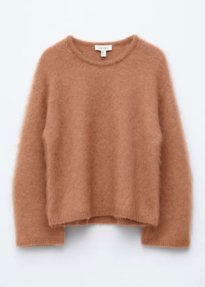 Wool Blend Sweater With Pleated Sculptural Sleeve