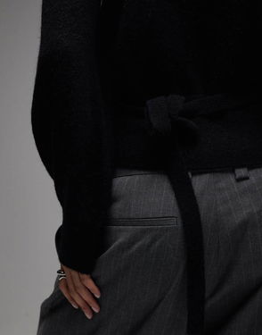 Wool & Mohair Blend Mock Neck Knitted Top With Side Tie Details In Black