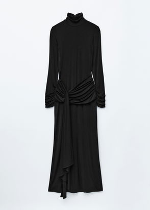 Jersey Midi Dress With Wide Sleeves And Front Split