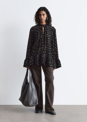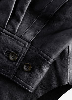 Double Lined Bodysuit With Ruche Neckline With Rope Tie Back In Black