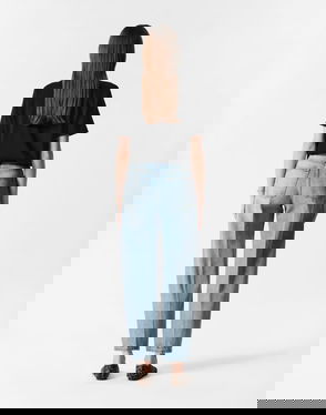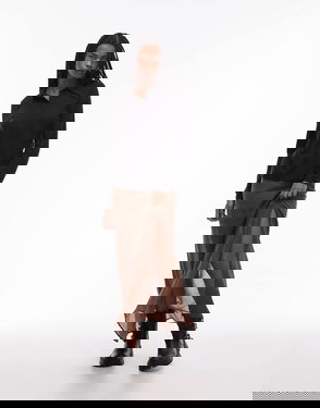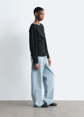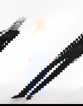 Long Sleeve Rib Jersey Top In Black With Studded Neck And Cuff Detail
