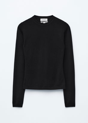 Pointed Collar Wool Jersey Knitted Shirt In Black