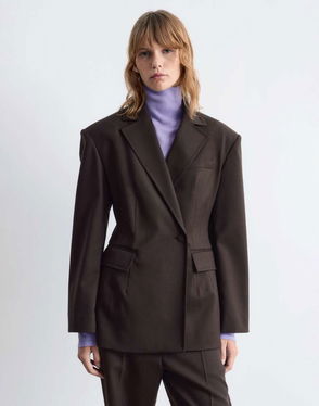 Wool Double Breasted Blazer In Brown
