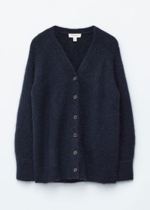 Mohair & Wool Blend Hairy Knit Cardigan In Blue