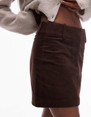 Cotton Rich Cord Mini Skirt In Dark Brown