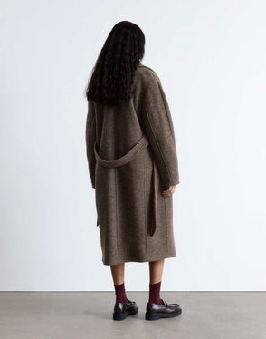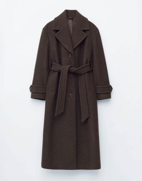 Wool Belted Maxi Coat With Funnel Neck In Brown