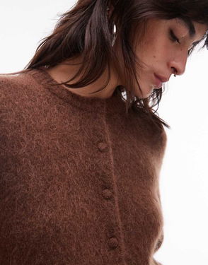 Supersoft Mohair And Wool Blend Cardigan In Brown