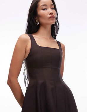 Maxi Dress With Metal Halter Neck Detail And Low Back In Brown